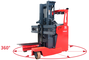 采购阶段是奠定高效运营的基础。企业需依据自身仓储环境、货物特性及作业强度,精准匹配电动堆垛车的参数指标。对于层高较高的立体仓库,优先选择起升高度达 10 米以上的前移式堆垛车,其伸缩式货叉可深入货架内部作业;而在密集存储的穿梭式货架系统中,窄巷道堆垛车凭借仅 1.2 米的车身宽度,能充分利用有限空间。此外,电池续航能力与充电模式的选择直接影响作业连续性,日均作业时长超 8 小时的场景,建议配置双电池组或支持快充技术的车型,避免因电量不足导致停机损耗。